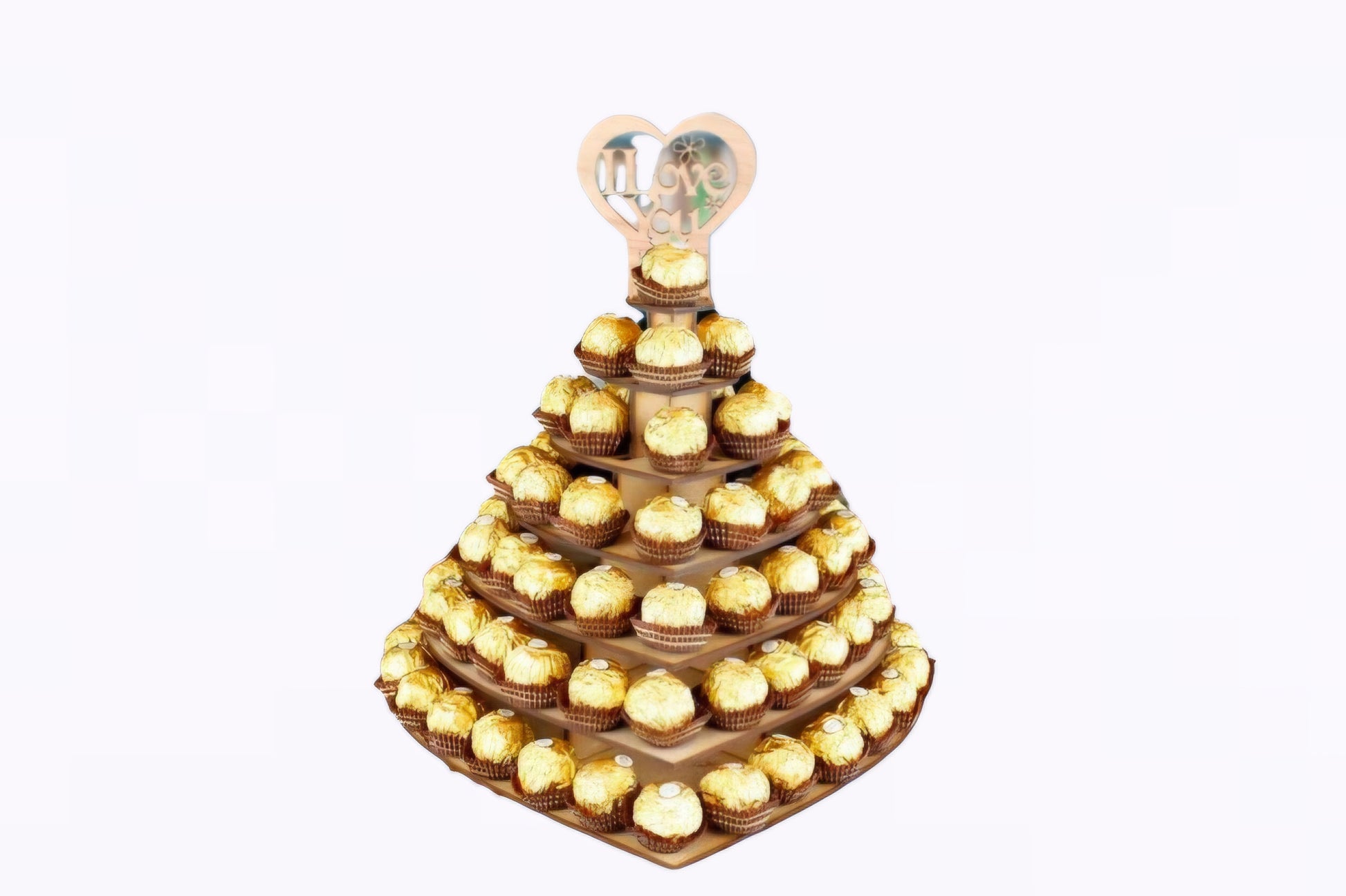 Celebrate luxury and love with the Golden Indulgence Ferrero Rocher Tower, featuring 96 exquisite Ferrero Rocher chocolates arranged in a stunning tiered display. Topped with an elegant "I Love You" heart, this grand masterpiece is the ultimate gift for anniversaries, weddings, engagements, birthdays, and corporate events.