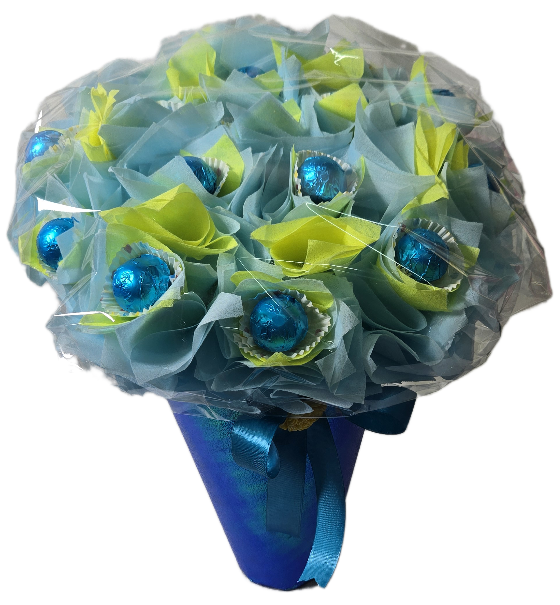 Immerse yourself in the serene beauty of the Ocean Bliss Chocolate Bouquet, a mesmerizing arrangement of 16 exquisite chocolates, artistically wrapped in tranquil shades of blue and green. This bouquet exudes an aura of calmness and elegance, making it a perfect gift for your special moments.