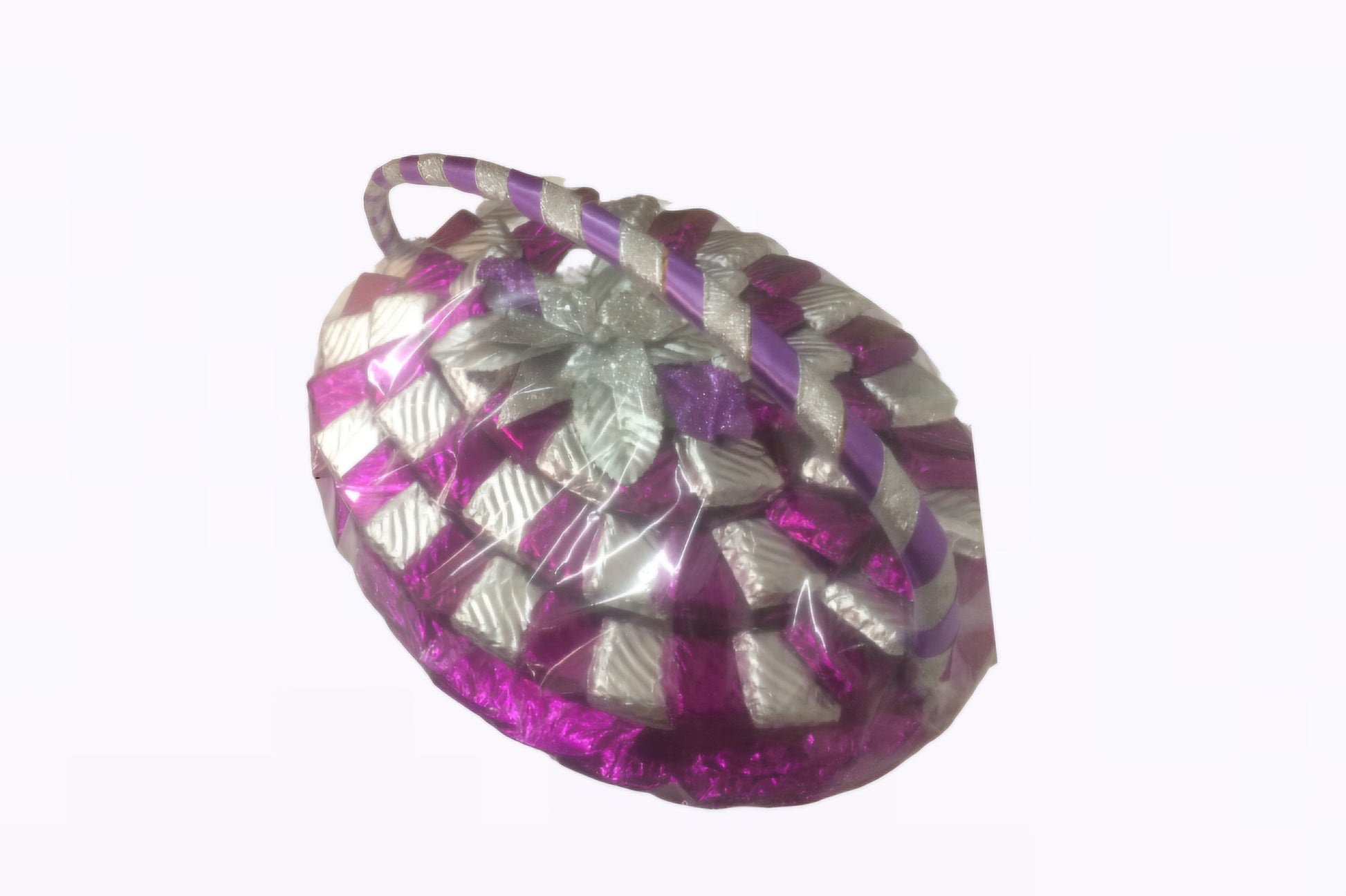 Indulge in luxury and sophistication with the Royal Elegance Chocolate Basket, a breathtaking arrangement of 60 premium chocolates, beautifully wrapped in shimmering purple and silver hues. Designed for those who love grandeur, this handcrafted masterpiece is the ultimate gift for weddings, anniversaries, festive celebrations, and corporate events.