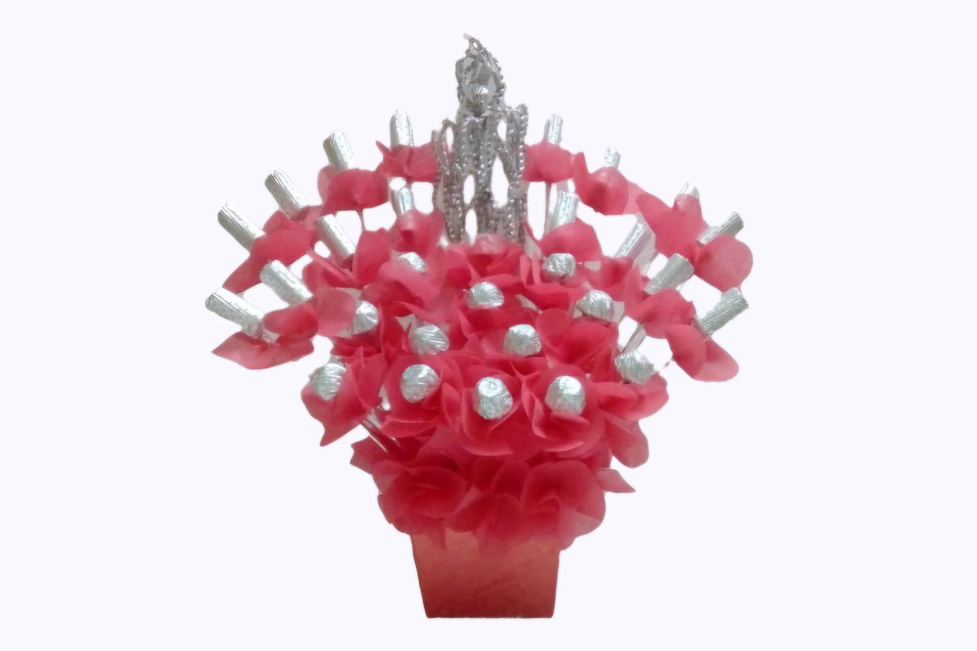 Make every occasion grand and memorable with this stunning handcrafted chocolate bouquet. Wrapped in luxurious red floral arrangements, this masterpiece features 28 exquisite chocolates, making it the perfect gift for those who love elegance and sweetness combined. The bouquet is topped with a royal decorative centerpiece, giving it a majestic charm.