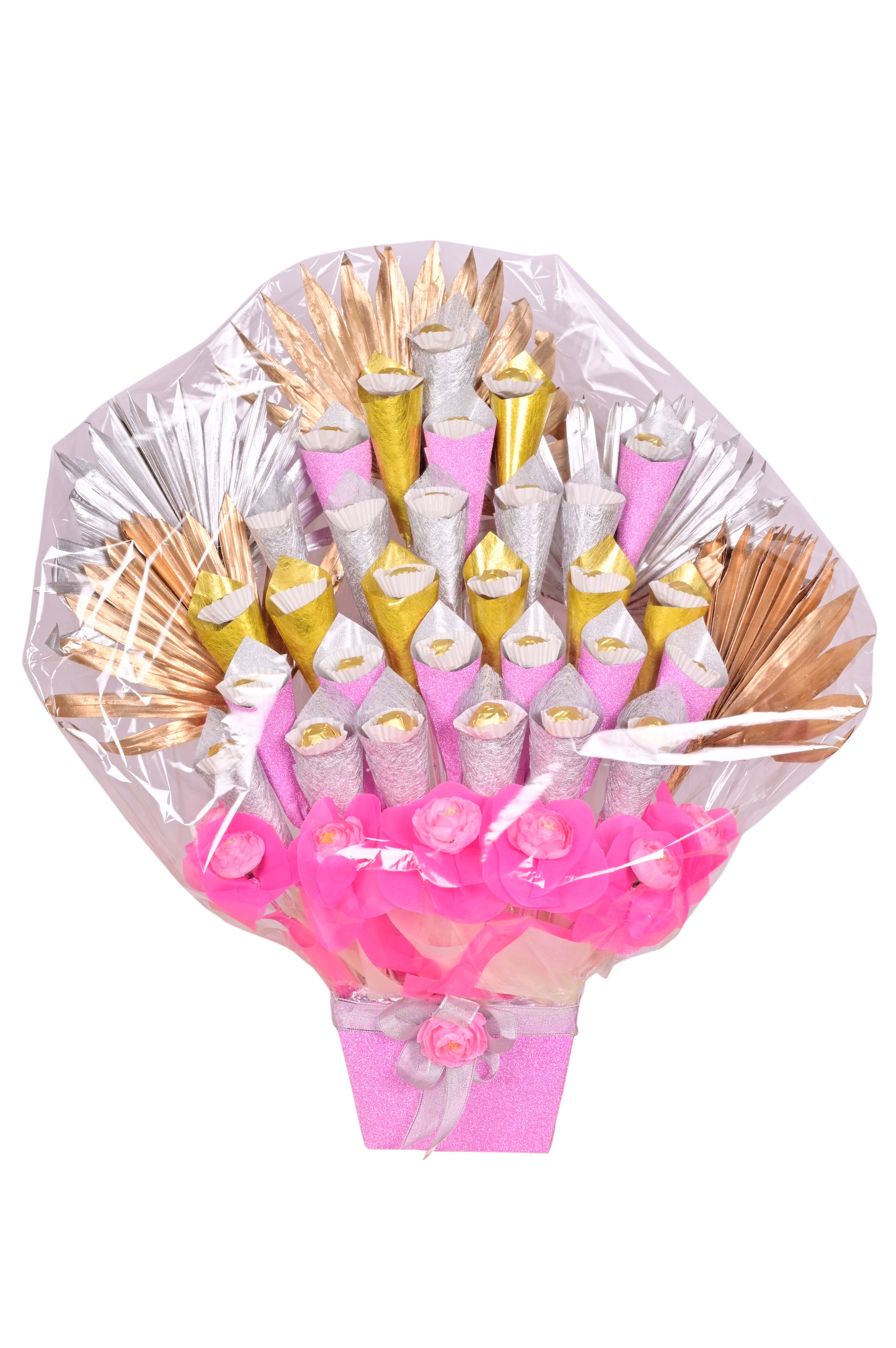 Make a grand statement with Schocolate's Flower-Shaped Chocolate Bouquet, featuring 32 premium chocolates beautifully arranged in a large, elegant flower design. This impressive bouquet is perfect for making any occasion truly special, whether itโ€™s a birthday, anniversary, wedding, or festive celebration. The vibrant and sophisticated arrangement will captivate the recipient, making this luxurious bouquet a perfect gift to show love, admiration, and joy.