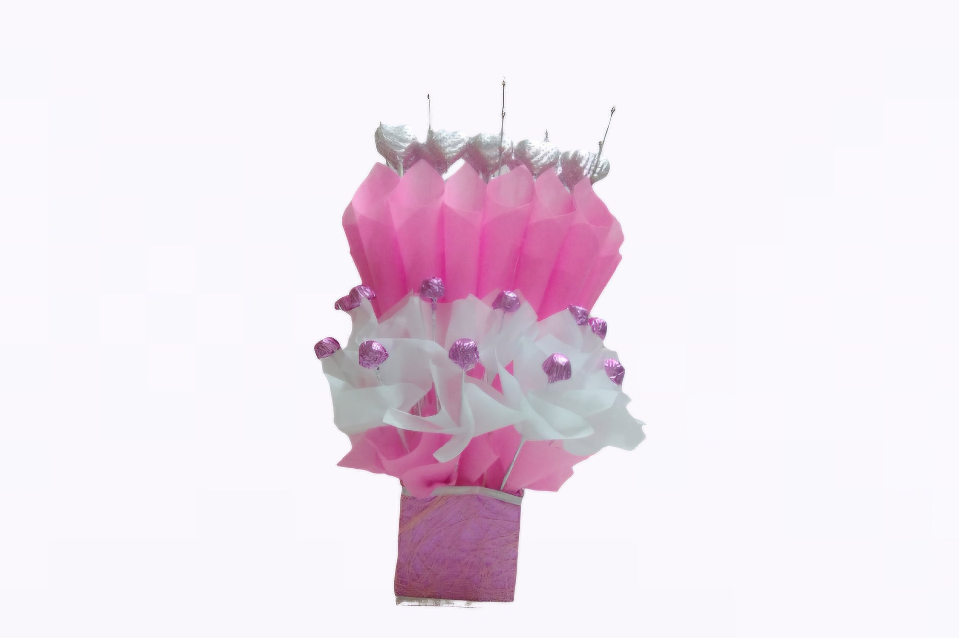 - Design Type: A grand two-layered chocolate bouquet wrapped in elegant pink and white.