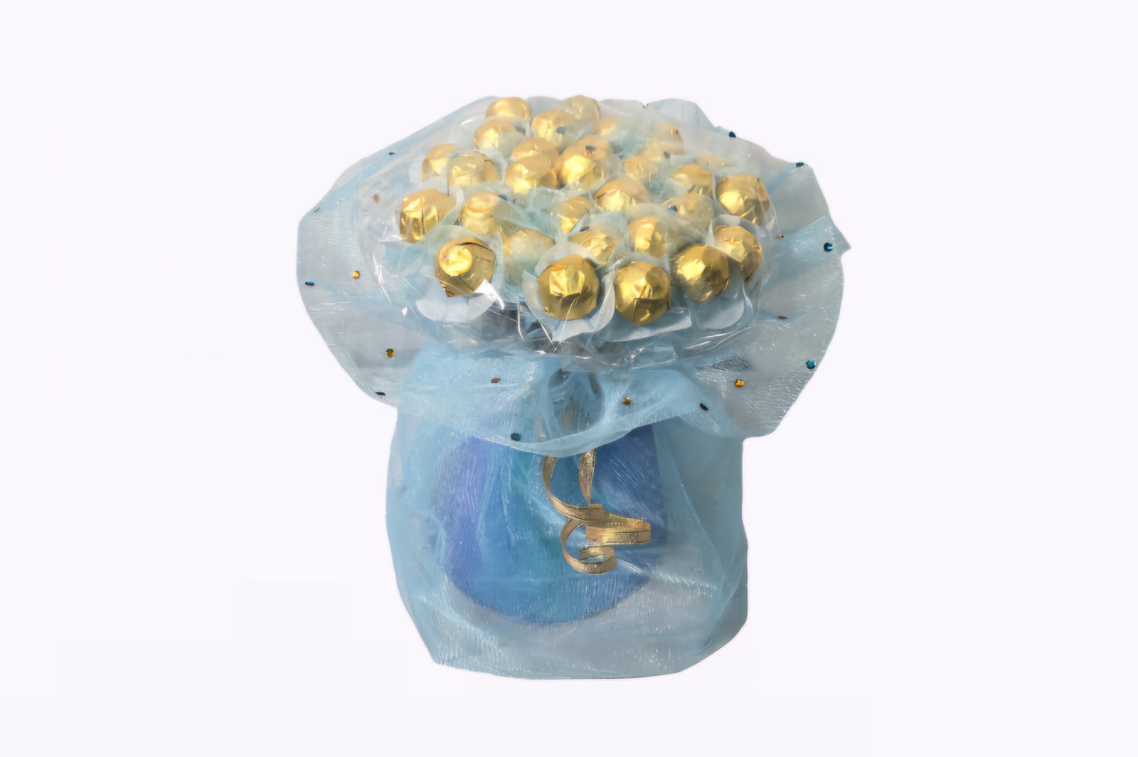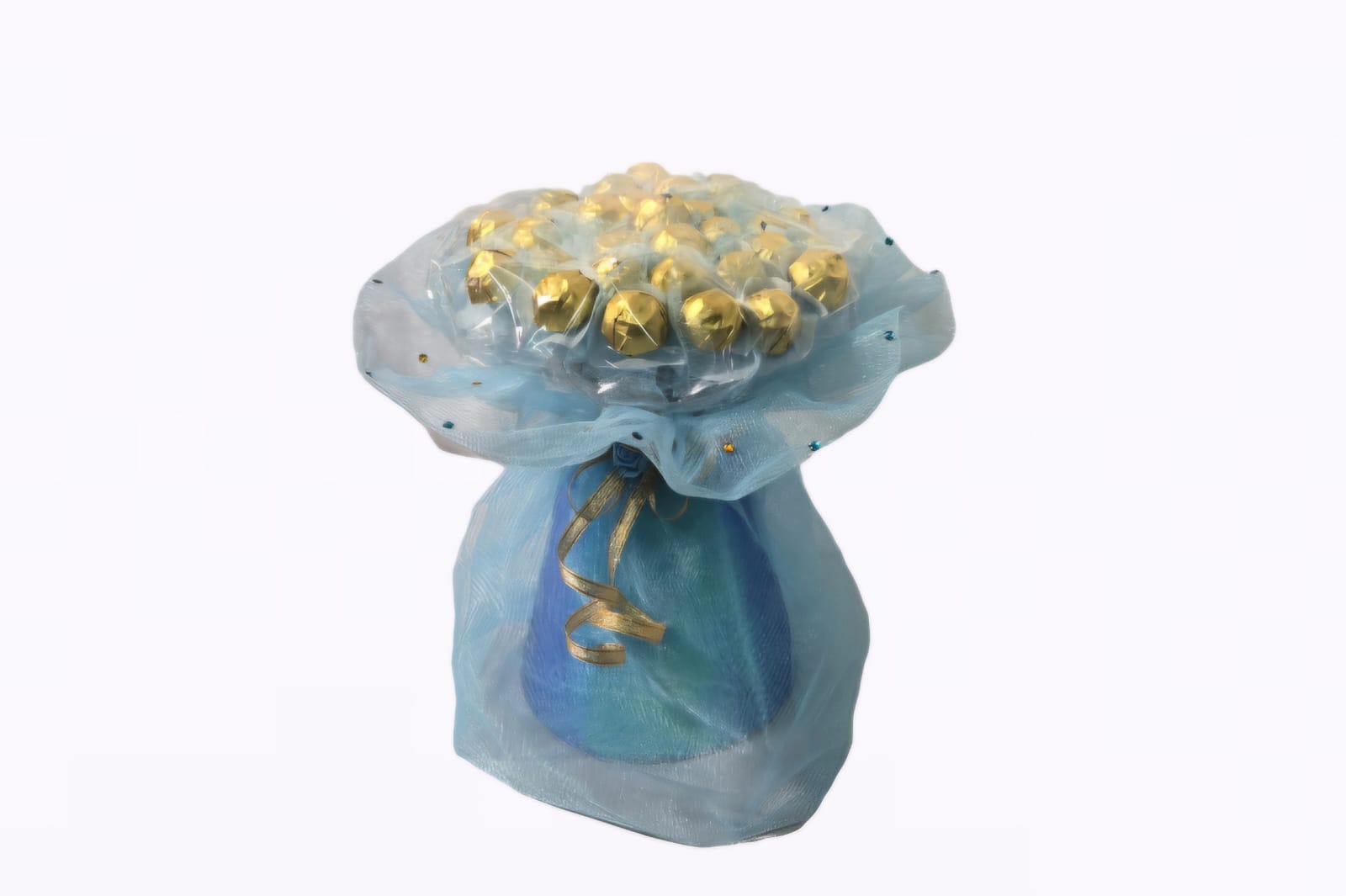 - Design Type: Table chocolate bouquet wrapped in elegant net fabric.